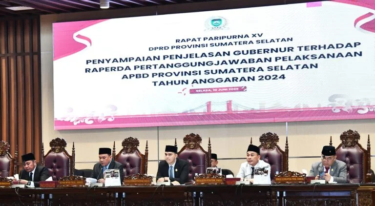 PALEMBANG.CROSCEK.com – Dewan Perwakilan Rakyat Daerah (DPRD) Provinsi Sumatera Selatan kembali menegaskan komitmennya dalam mengawal tata kelola keuangan daerah yang transparan dan akuntabel. Hal ini ditandai dengan disetujuinya Rancangan Peraturan Daerah (Raperda) tentang Pertanggungjawaban Pelaksanaan APBD Tahun Anggaran 2024 dalam Rapat Paripurna XV yang digelar dalam Ruang Rapat Paripurna DPRD Sumsel. Senin (7/7/2025)
